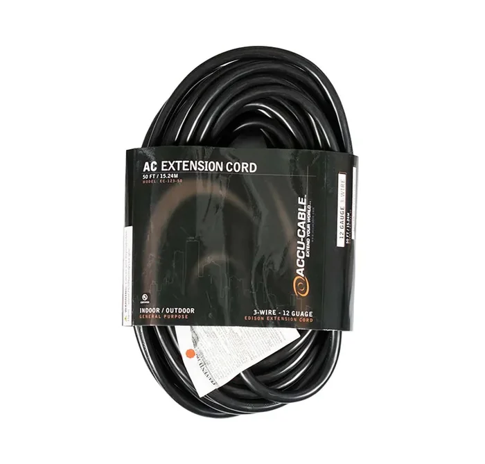 Accu-Cable EC123, 12 AWG 3-Wire Edison AC Extension Cord – 25 Ft, 50 Ft, 100 Ft