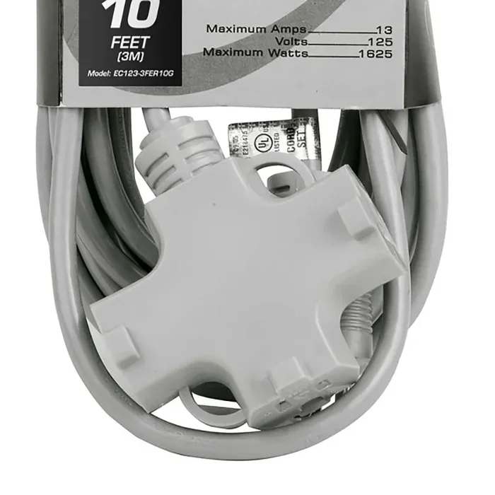 The Accu-Cable EC123-3FER10G, 16-Gauge Indoor/Outdoor AC Extol Cord with Triple Tap – 10 Ft is a versatile and reliable power solution designed for a variety of applications. Measuring 10 feet (3 meters) in length, this extension cord features a durable gray housing and is UL approved for safety. It includes a triple tap, 3-prong female Edison connection, and a single connection male 3-prong Edison connection, making it perfect for powering multiple devices simultaneously.