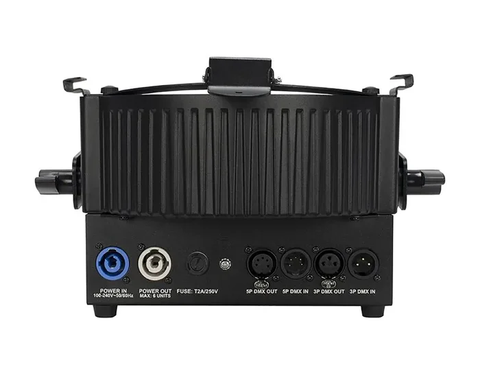 18P HEX professional features include: 4 DMX modes (6, 7, 8 and 12), 5 operational modes, 5 dimming curves, flicker free operation and a 4-Button DMX menu with digital display. Daisy-chain up to 4 units (110V) or 8 units (240V) together via the fixtures built-in locking power in and out connections.