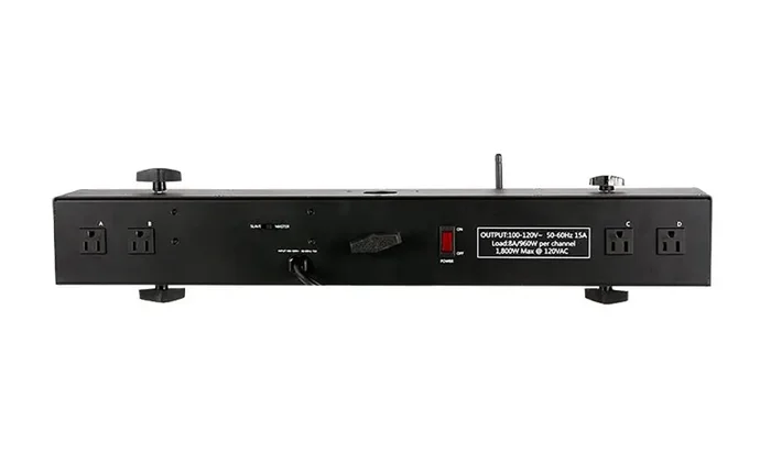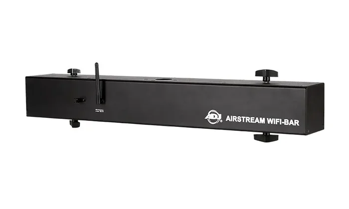 The ADJ Airstream WiFi Bar, 4-Channel WIFI switch BAR is a wireless device that allows your iPhone or iPad to control the four outlets (ON/OFF) on the AIRSTREAM WIFI BAR. The AIRSTREAM WIFI BAR creates a private standalone WiFi network, no existing network infrastructure required. After connecting the AIRSTREAM WIFI BAR device to the AIRSTREAM WIFI iOS app wireless network, users can wirelessly switch the four outlets ON and OFF manually or automatically. The wireless frequency is 2.4 GHz and it will coexist in busy RF environments alongside technologies like Bluetooth® and other WiFi networks. The AIRSTREAM WIFI BAR is the ideal solution for mobile entertainers, nightclubs, bars, production events or for any event where you do not want data or power cables to be seen. The AIRSTREAM WIFI BAR includes a WiFi antenna, 4 Edison output sockets, power indicator LED, primary/secondary switch and an on/off switch.