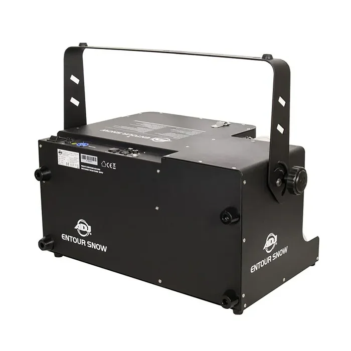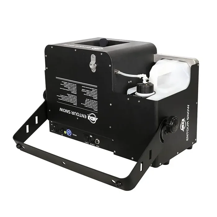The ADJ Entour Snow, Professional Snow Machine with DMX Connection is a powerhouse in ADJ Lighting’s Entour Series of atmospherics, The 1250W professional-grade snow machine is crafted for both installations and touring applications. Its high-output design projects imitation snow up to 10m vertically and 12m horizontally, perfect for large venues and stage productions. With flexible variable output, a built-in timer, and 3-pin & 5-pin DMX connections, control is at your fingertips. The rugged metal case, weighing 30 lbs., houses a 5.6L fluid tank, offering over 11 minutes of non-stop operation. Ideal for festive parties, concerts, and theatrical productions, the Entour Snow brings the magic of a powerful snowstorm right on cue.