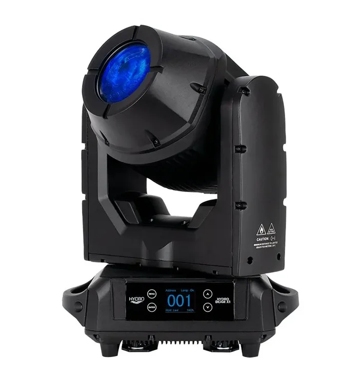 The ADJ Hydro Beam X1, Moving head fixture with Osram Sirius HRI – 100 Watt, 6,000-hour, discharge lamp that produces a razor sharp 3-degree beam. Its compact sizes offer quick movement. With robust construction and IP65-ratings, the Hydro Beam X1 is designed for both indoor or outdoor use. Its durable casing protects it from dust, sand, moisture and liquids, making it ideal for use in all situations from dusty deserts in California to rainy fields in England.