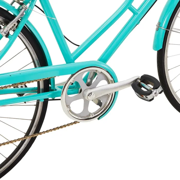 Details: mint Blue metal bicycle/ cruiser with brown leather seat and handles