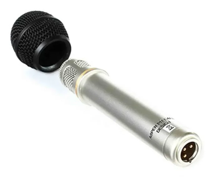 The Aspen Pittman Designs DT-1 is a Dual Top Condenser Handheld Vocal Microphone. The Aspen Pittman Designs DT-1 Microphone is a ball-end hand-held true condenser vocal mic that will greatly enhance the detail of any live vocal performance. Unscrew the ball end pop filter and you will see a mid-sized stainless-steel top-firing mic that is perfect or mic’ing stage guitars, drums, and other instruments in live performance. The DT1 Microphone easily converts from a stage mic back to an extremely versatile studio mic. his high-quality true condenser capsule is optimized for critical instruments and vocal recording in the studio, while its reduced sensitivity to feedback and handling noise makes it perfect for use on live stages too. The removable spring steel ball top adapts this unique mic for dual purposes… a condenser mic for vocals or an instrument mic when the ball end is removed. The DT1 Microphone uses our proprietary mid-sized 0.83″ (21 mm) all-brass capsule with a 0.75″ (19 mm) very thin 6 microns 24k gold evaporated Mylar diaphragm design.
