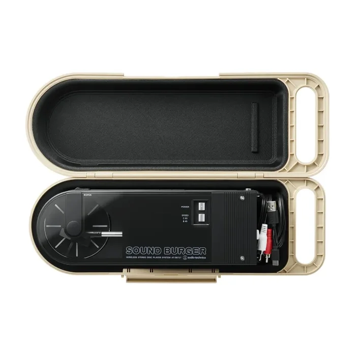“Every take-out burger needs a box, and the Sound Burger is no different. Protect your Sound Burger portable turntable (AT-SB727 or AT-SB2022 model) from scratches and dust with this specially designed hard storage case that’s made to look like the classic fast food take-out boxes from the 1970s and ’80s.” – Audio-Technica