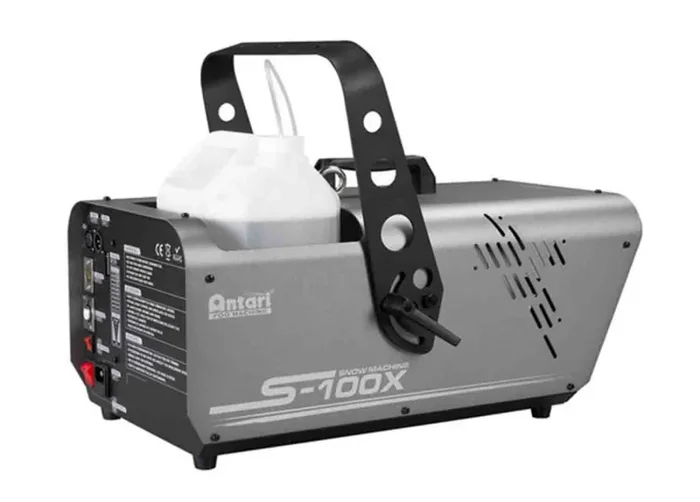 The Antari S-100X is a Professional Snow Machine with DMX built to the same stringent standard as our fog machines. The S-100X is a robust and large output snow machine that produces abundant amounts of snow. With equipped powerful motor, S-100X is capable of blowing the snow to considerable distances. S-100X has standard DMX on board including an SC-2 volume control remote. The hanging bracket comes standard for ease of trussing and installation. It’s light and portable which is perfect for club effects, movie sets, and stage settings where lifelike snow effects are demanded.