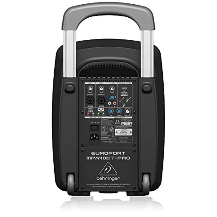 The great-sounding MPA40BT-PRO is amazingly-lightweight (19.7 lbs/9 kg) thanks to its Class-D amplifier, and the onboard battery pack keeps the party going for up to 12 hours – without a power outlet in sight! To add even more convenience, a retractable, luggage-style handle and built-in wheels are provided for the ultimate in carefree portability.