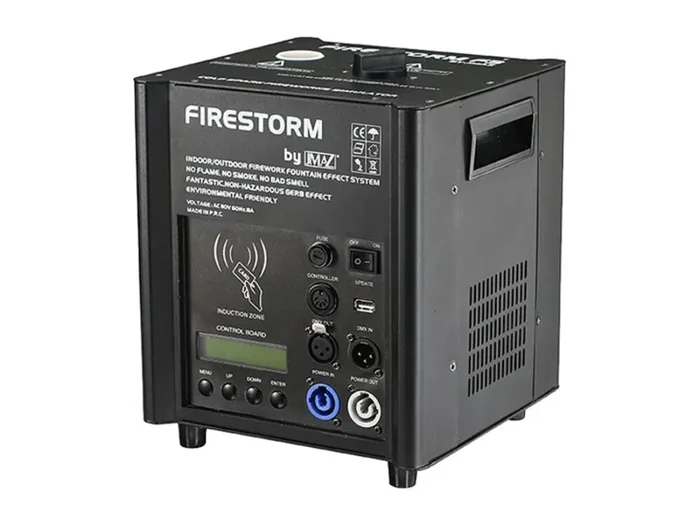 The Firestorm F3 by JMAZ Lighting is a portable and versatile cold spark machine that can be adjusted to meet your needs. With multiple control solutions built-in, including wired DMX, Stand-Alone Mode, or using the included RF Remote, you can take control of your event. The Firestorm uses only 500-watts of power and has a warm-up time of fewer than 8 minutes.