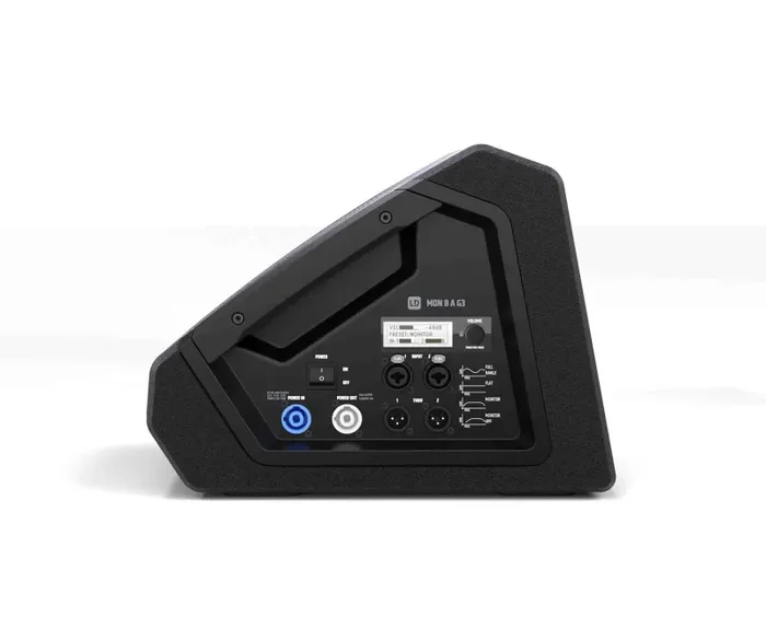 The LD System MON 8 A G3 is an 8″ Powered Coaxial Stage Monitor. The MON 8 A G3 is part of an entirely newly developed family of powered stage monitors for high performance. The MON G3 Series incorporates the advanced technology and premium materials found in high-end monitors typically rented by professionals, making this quality available to everyone. These include, for example, advanced coaxial loudspeakers with integrated 50° x 90° CD horn, which ensure the acoustic ideal of a true point source and thus outstanding audio characteristics even at short listening distances. Besides this, the series offers a high-level of robustness, a comprehensive set of features and the elegant LD Systems design.