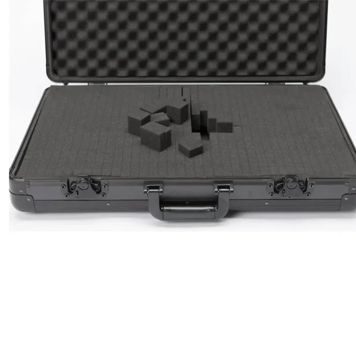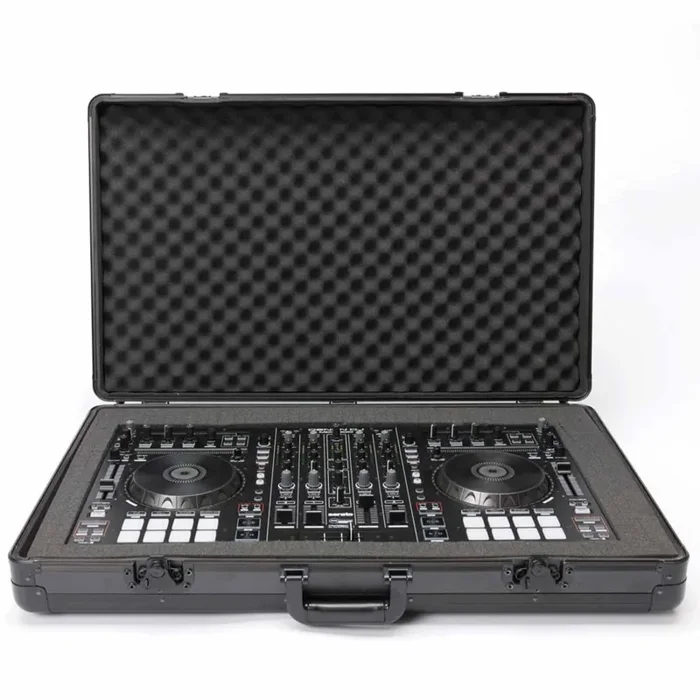 The Magma MGA41102, Carry Lite Case XXL Plus For DJ Controller. The new CARRY LITE DJ-CASE XXL PLUS is a very lightweight and compact carrying solution for your DJ-equipment and comes in a nice full-black matte finishing. Constructed from laminated MDF panels and anodized aluminum profiles the CARRY LITE design features a fully padded interior with a variable pick & pluck foam that allows to create individual adapted compartments for various-sized DJ-controllers such as Pioneer DDJ-SX2, Denon MCX-8000, Denon MC-7000, Roland DJ-808 or similar-sized DJ-controllers The pick & pluck foam consists of two separate layers providing the additional option to create another slot underneath the controller for laptop or cable storage.