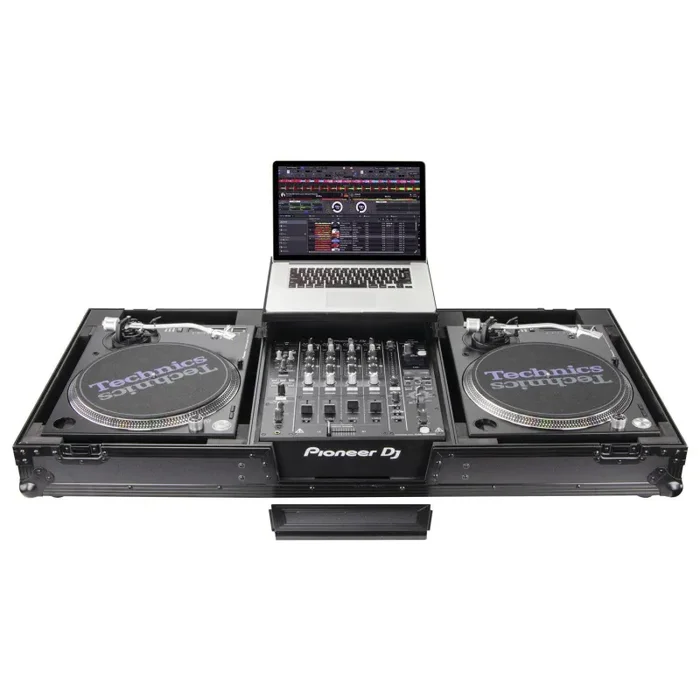 Cabling is clean and easy with convenient access ports throughout the rear of the case. Our turntable DJ coffins can accommodate Technics as well as Numark, Pioneer, Stanton, and similar sized turntables.
