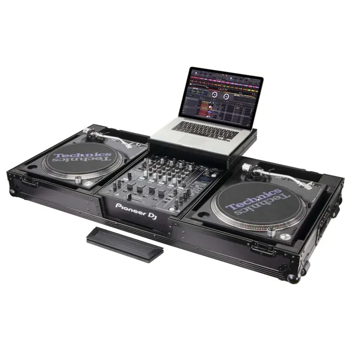 B-Stock: Odyssey FZGSLBM12WRBL Black Low Profile 12″ Format DJ Mixer and Two Battle Position Turntables Flight Coffin Case with Wheels and Glide Platform