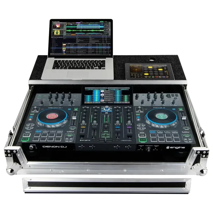 Odyssey presents the Flight Zone FZGSPRIME4 case featuring our patented Glide Style gear platform, great for positioning laptops, tablets, effect processors, and other performance essentials where you want over the controller. Specifically made for the Denon Prime 4 DJ controller and features a stylish V-Cut removable front V-cut panel allows for easy access to the front controls and headphone, mic jacks. A spacious ventilation pit under the controller is ideal for storing cables and other accessories.