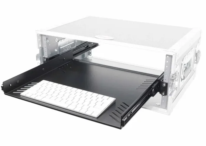 The ProX T-1RDTR is a 1U ventilated sliding rack tray designed for quick and convenient access to essential gear in a standard 19″ rack. Perfect for storing microphones, pedals, audio interfaces, small mixers, MIDI controllers, tools, and more, it features smooth ball-bearing slides and a stop-lock mechanism for secure operation. The low-profile drawer with side vents promotes airflow, while the included faceplate keeps items safely in place during use and transport. Built from durable steel with a black powder-coated finish, this tray is ideal for DJs, musicians, IT techs, and AV professionals.