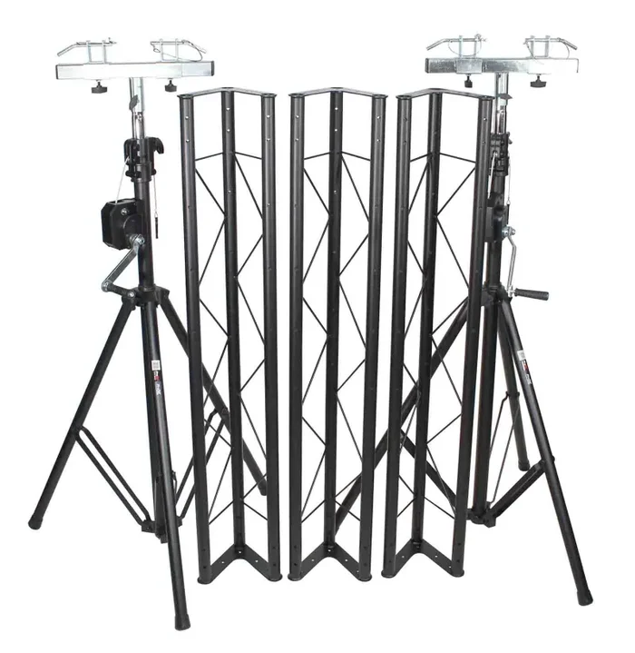 Designed with (3) Triangular Sections that can spread over 171″ in width. This is a professional lighting truss system that will over perform every time. It supports up to 200 Pounds equally distributed. All steel construction easily keeps your speakers and lighting safe and secure. This the truss segments ONLY, no lifting equipment included Stands Sold Separately.