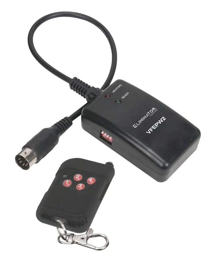 The Eliminator Lighting VF1300 EP is a 1100W mobile wireless Fog Machine that is great for mobile entertainers, and medium size nightclub and bars that want to add atmosphere to their events, plus it allows people to see the beams from the lighting fixtures. Includes a wired remote and a wireless remote control. This device features a revolutionary new heating element specifically designed to prevent excessive particle build-up that can cause premature fogger failure. The fog machine has a wide-angle spray nozzle and a long-life pump, both specially designed for high-performance fogger output. Additionally, the fluid tank includes a fluid level sensor that automatically shuts down the device if low fluid level is detected, providing a safeguard against premature pump or device failure.