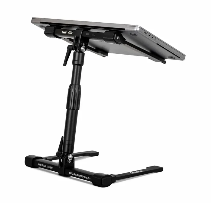The Headliner Gigastand USB+ is a fully adjustable laptop stand with integrated high-speed USB hub. Designed for DJ’s, Musicians, Performers, and Creators, this 2-in-1 device will save space on your workstation and in your bag by combining two integral parts of your setup.