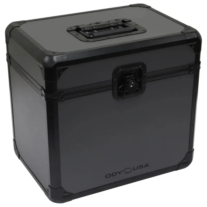 The Odyssey KLP70BLG is a Carrying Case for Black Krom on Gray Series Vinyl and LP/Utility. Odysseys Black Krom cases are made to the same standards as our original Krom series, but with a twist. The hardware including the aluminum trim are coated a sleek Black. The steel corners are uniquely hexagon-shaped and each also features rubber feet for stacking multiple record cases, a must for the collections of vinyl purists and of DJs who are true to the art of turntablism. The KLP70BLG has a fully foam-lined interior, heavy-duty recessed handle, and a front latch with padlock loop. Black Krom cases, slick, stealthy, and beyond cool.
