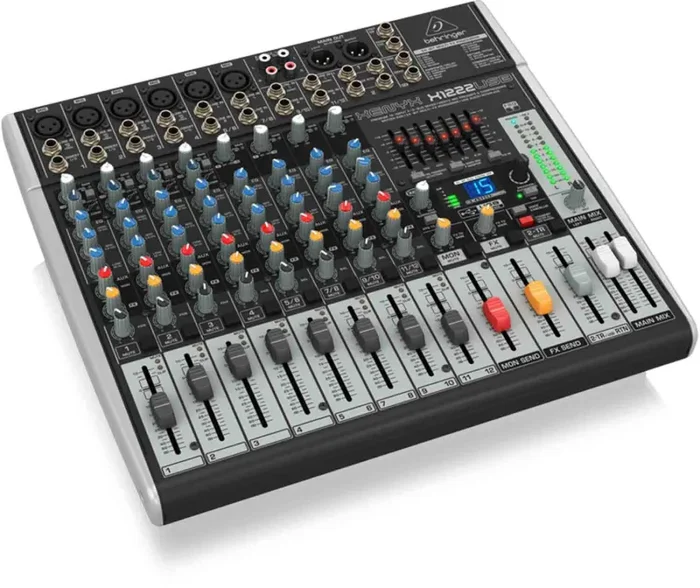 The compact XENYX X1222USB mixer allows you to effortlessly achieve premium-quality sound. Channels 1 to 4 feature our XENYX Mic Preamps, renowned for their pristine performance, plus 2 of the 4 stereo channels accept XLR inputs, as well as Line-Level sources. All mono channels get our ultra-musical British 3 band EQs and easy to use one-knob compressors for the ultimate in punch and clarity. Add to this our 24-bit, dual-engine Multi-FX processor with 16 editable, professional-grade presets that include reverb, chorus, flanger, delay, pitch shifter, and multi-effects and the X1222USB becomes an incredibly versatile mixer for your live performances.