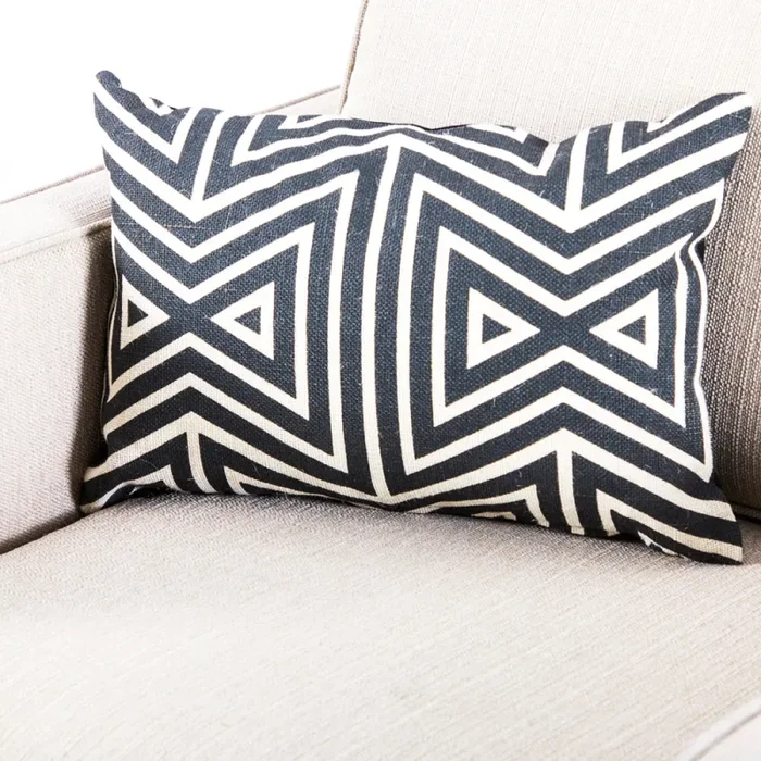 Details: Black and white zig zag patterned pillow