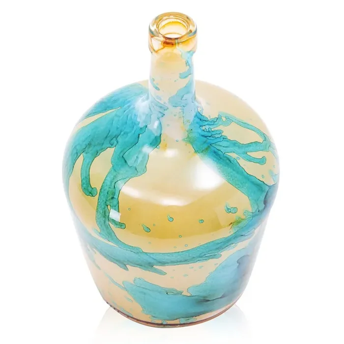 Blue Aqua Yellow Glass Bottleneck Vase (A+D)