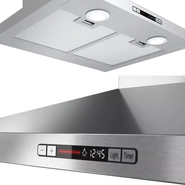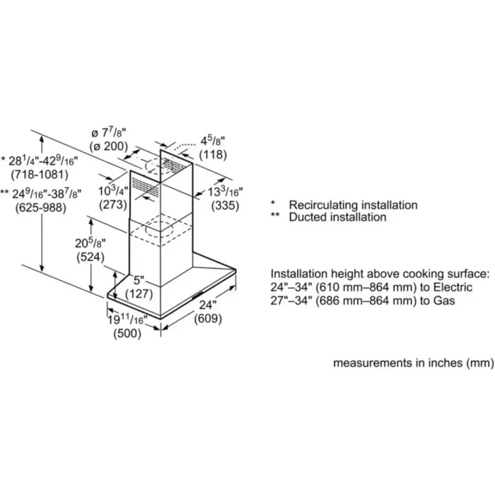 Bosch’s inventive ventilation systems keep the mealtime fresh by quietly purifying the air while you are cooking. Stainless steel 24-inch pyramid canopy chimney hood integrates matching user interfaces and design aesthetics to complete the Bosch kitchen suite with sleek and sophisticated styling. With 300 CFM of power, wonderful Bosch hood will rapidly clear the air of grease, steam, smoke, and odor to maintain your home fresh and odor-free. This Wall-mounted chimney hood adds style and sophistication to the kitchen and gives you greater freedom in your kitchen planning.