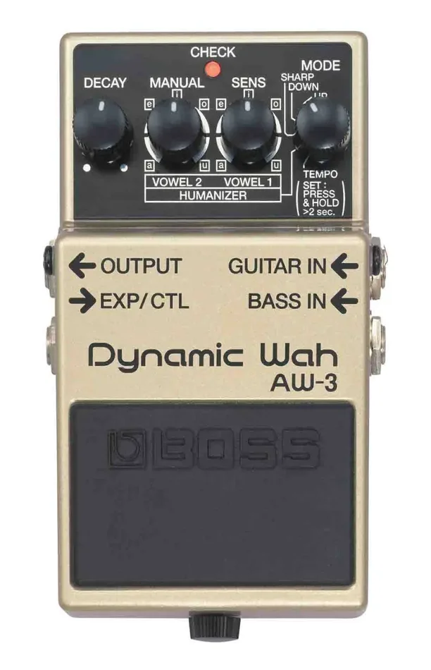 The BOSS AW-3 Dynamic Wah pedal gives guitarists a wide range of classic auto-wah and dynamic wah effects, plus a new “Humanizer” effect which can simulate human vowel sounds. A Bass input provides a variety of funky wah sounds for bass guitar.
