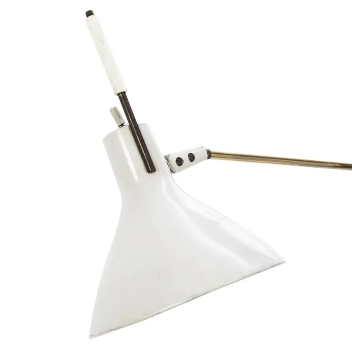 Detail : Wood and Brass Stand, Three Cone White Shades, Floor Lamp, Lights, Round Base
