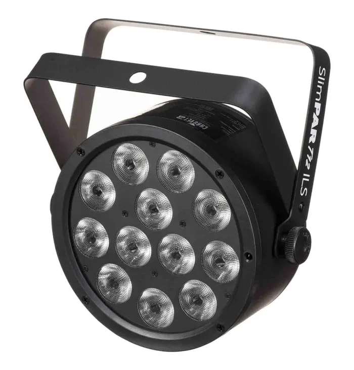 The Chauvet DJ SlimPAR T12 ILS is a Low-Profile Tri-color LED Wash Light with ILS Technology. Mobile entertainers and lighting technicians in need of a wash light will be impressed with the CHAUVET DJ SlimPAR T12 ILS, a low-profile LED PAR that’s powered by twelve 4.9W tricolor LEDs (red, green, blue) and lets you generate a broad spectrum of colors, well suited for clubs, bars, concerts, special events, parties, and more. The SlimPAR T12 ILS allows you to create custom colors using the built-in LED display and achieve smooth LED fading with built-in dimming curves. The fixture is flicker-free, making a great choice for on-camera work.
