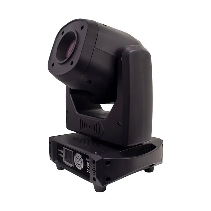 80W Moving-head LED Spotlight with Two Gobo Wheels (One Metal, One Rotating Glass), Motorized Focus, Rotating 3-Facet Prism, 8 Colors, Automated/Sound-activated Programs, and DMX Control. Easily operate the light with the Full-Color LCD screen. The unit also features PowerCon in/out for power linking. This versatile light is a powerful and compact fixture perfect for Mobile Djs, Small Bars, Clubs or Corporate Events.