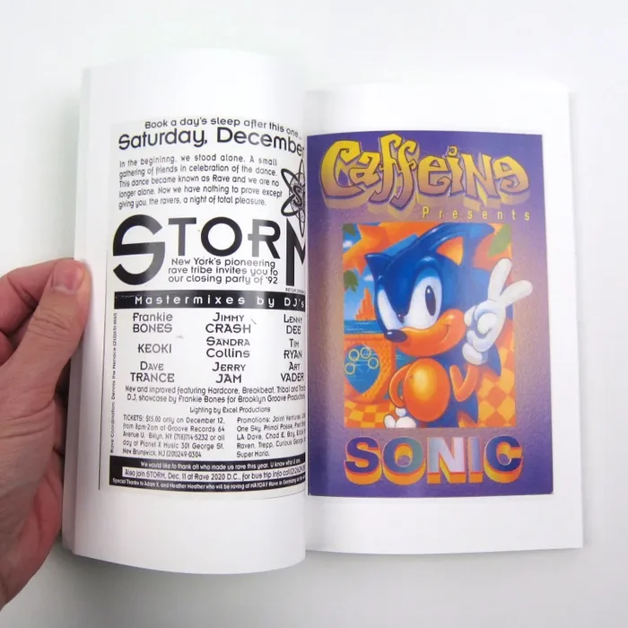 - full color reproductions of early 90s rave flyers
