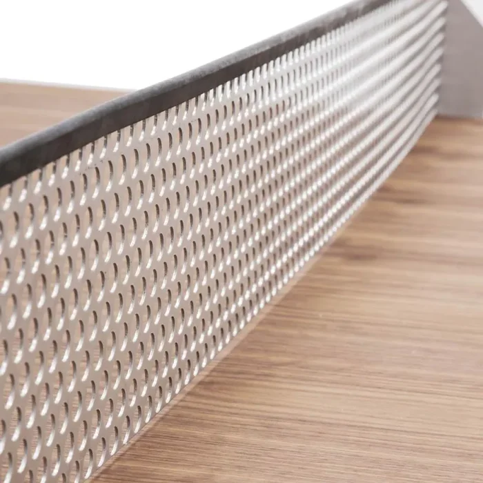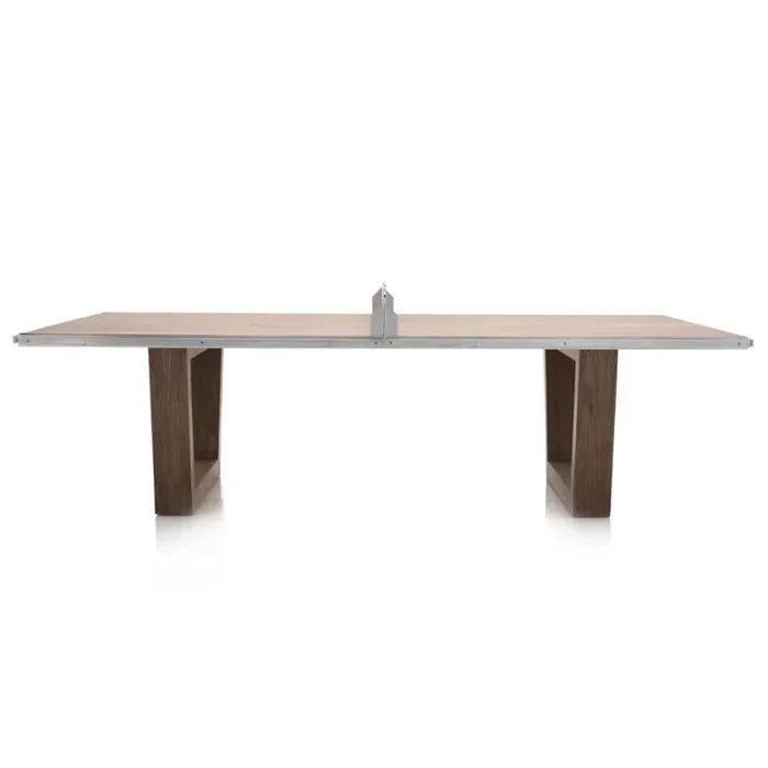 Details: Contemporary table tennis table with metal net and wood base