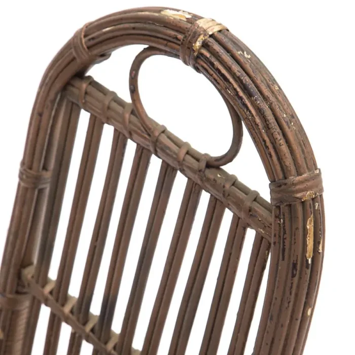 Details: Rustic high-backed dining chair with wicker frame and open circle in backrest