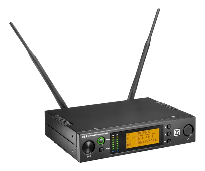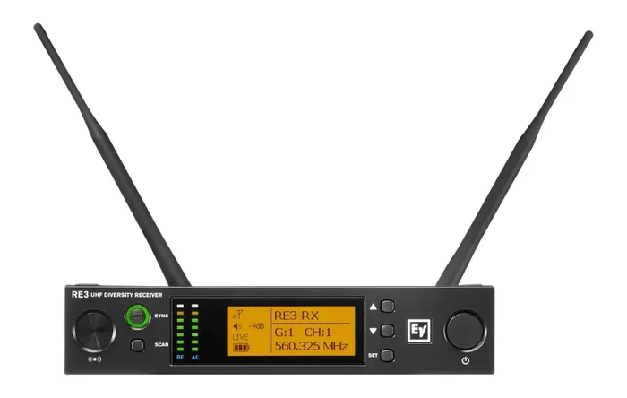 The Electro-Voice RE3-ND76-5L, Wireless Handheld Microphone System with ND76 Wireless Mic – 5L: 488 to 524 MHz for vocal performance and presentations. The ND 76’s crisp, clear, and balanced vocal presence is ideal for all-around voice applications. Setup is quick and simple using the RE3 clear frequency scan and sync functions, and the radio link between the robust handheld transmitter and diversity receiver delivers rock-solid system performance.