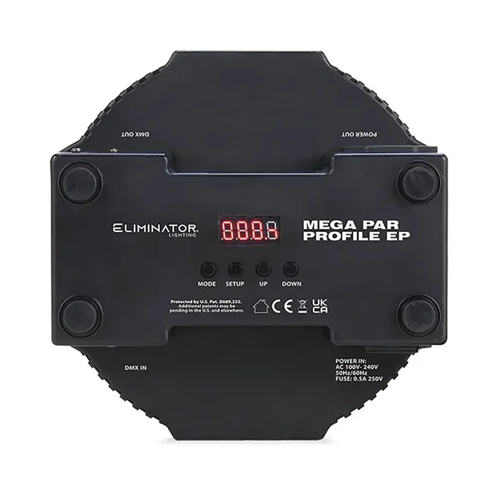 With 48 built-in light shows and 64 Color Macros, the Mega Par Profile EP is perfect for up lighting rooms and illuminating small stages. Its intelligent design allows it to rest on the ground or snugly within truss systems, thanks to the unique placement of power and DMX ports on the side, not the rear.