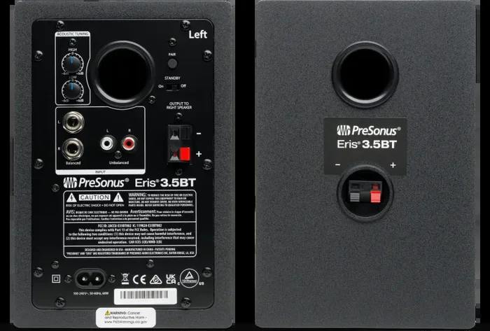 A convenient front-panel knob sets the level of both the power amp and the loud, clear headphone amplifier, with its front-panel jack. With four types of inputs, including fast, reliable, stereo Bluetooth® 5.0 connectivity, it’s easy to connect just about any audio source to your Eris 3.5BT reference monitors. High- and low-frequency controls let you easily adjust your Eris speaker’s frequency response to compensate for the acoustics of your space and create the most accurate sonic reproduction possible.