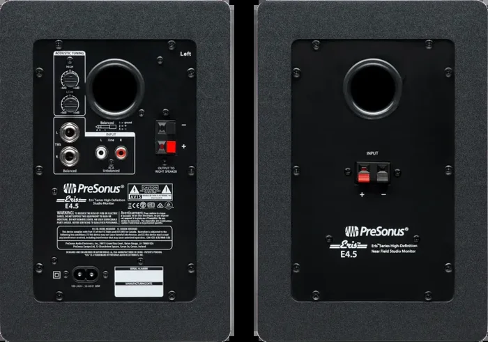 Designed by a proven leader in studio reference monitors, Eris E4.5 speakers deliver studio-quality sound, yet are compact enough to fit almost anywhere, making them a great choice for music lovers, content creators, and gamers. You get the flexibility of rear-panel, ¼-inch TRS and RCA inputs; a front-panel 1/8″ stereo line input for use with mobile audio devices; a convenient front-panel volume control; and an integrated headphone amplifier. Experience loud, clear audio thanks to 50W of onboard Class AB power. Want even bigger bass? Adjust the speakers’ response to taste with low- and high-frequency tuning controls. The Eris E4.5 media reference monitors bring studio sound to the home environment.