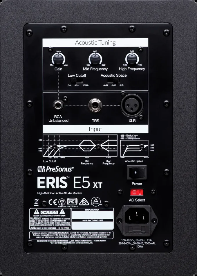 Suitable for both home recording studios and professional mix engineering, Eris XT studio monitors combine sterling audio quality with the flexible tuning and connectivity you’ve come to expect from PreSonus. The Eris E5 XT is a substantial update to a lauded classic. Deeper lows and a wider, more controlled sweet spot, thanks to its EBM waveguide design, mean that our best-selling studio monitors just got even better.