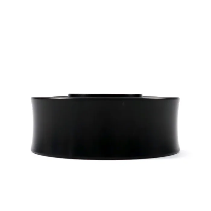 “Our anodized black LP weight is about half the weight of our brass LP weight at 308 grams for a different dampening effect and a lighter mass for turntables that require something a little lighter. Made in Richmond, Virginia, and machined from solid aluminum, our hard black anodized Record Weight improves the sound of your vinyl by lessening unwanted vibration coming off the record. An excellent accessory to our Montrose Turntable or to your own personal deck, this weight is made to last a lifetime. Ideal for lighter weight turntables with low profile dust covers The integral 45 adapter allows you to use our LP weight for standard 12 inch discs and smaller diameter as well.” – Fern & Roby
