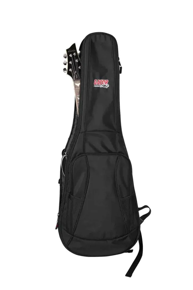 The Gator GB-4G-ELECTRIC Gig Bag has Internal Headstock and Bridge Reinforcement to Prevent Wear. Patent Pending Pick-Clip to Hold “Emergency” Pick. Contour Back Padding for Comfort. Padded Backpack Style Straps. GFLEX 20mm Padding on All Sides.