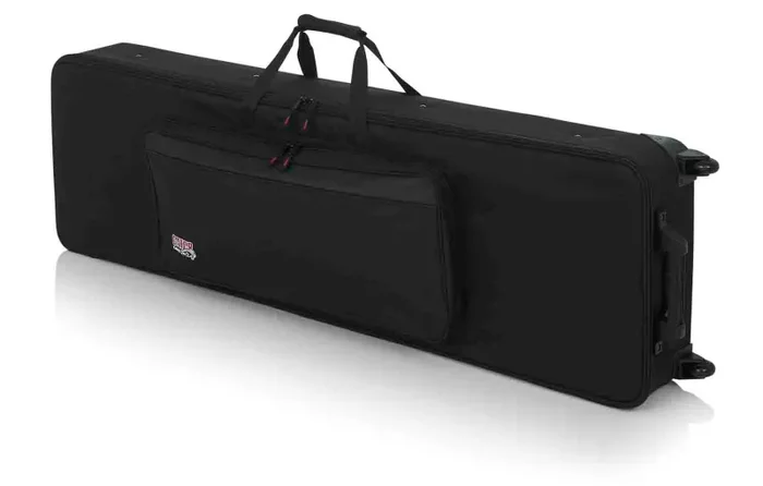 The Gator GK-88 SLIM Case has Large accessory compartments on the outside for pedals and cables. Fully Adjustable Padded Straps to Secure Keyboard in Place During Transport. Rugged Nylon Construction with Polyethylene Reinforced Interior Frame. The Interior is Lined with Tricot and Soft Foam. Built-In Wheels with Tow Handle and Skid Bars.
