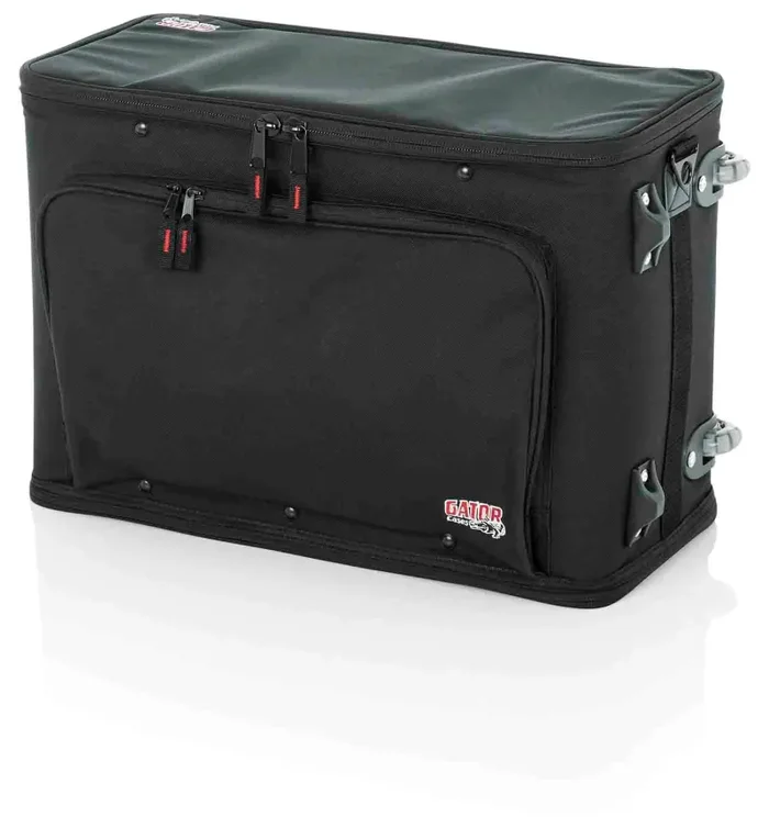 The Gator Case GR-RACKBAG-3UW is Lightweight Style Rolling 3U Rack Bag Great for Effects Processors, Recording Equipment, and Sound Modules. Polyethylene-Reinforced Interior Frame. Internal Reinforced Aluminum Valance. Retractable Tow Handle and Recessed Wheels. Ergo Grip Carry Handle. Rear flap allows access to entire panel of equipment. 600-Denier nylon exterior. Exterior pocket for cables, etc.