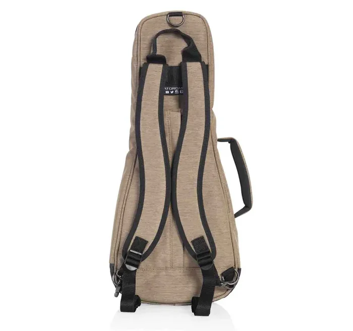 The Gator Cases GT-UKE-SOP-TAN is transit Series Gig Bag Designed to Fit Soprano Ukuleles. Weather-Resistant Blended Fabric Exterior in Tan. Thick Foam Padding Throughout Interior Frame of Bag for Case-Like Protection. Removable Color-Matched Backpack Straps with Concealable Stowaway Zipper Pocket. 20mm-Thick Removable Neck Support Foam Pad Covered with Plush Micro-Fleece Lining. Exterior Accessory Pocket with Mini Pocket on Front for Storing Phone, Keys and Small Electronics. Reinforced Carry Handle for both Secure and Comfortable Grip. Thick Rubber Tread on Bottom of the Bag Prevents Wear and Protects from Small Puddles to Spilled Drinks. D-Ring for Clipping Accessories.
