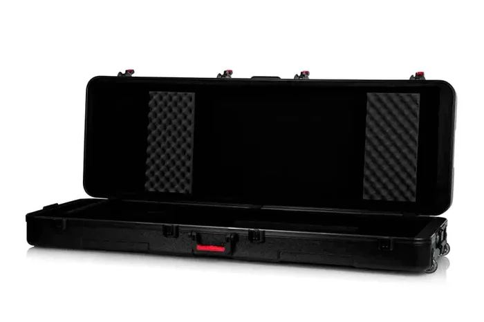 The Gator Case GTSA-KEY88D is polyethylene Keyboard Case with Wheels for Extra Deep 88-note Keyboards in black. Fits Extra Deep 88-note Keyboards. Nearly Indestructible Polyethylene Construction. Two TSA Accepted Locking Latches Ideal for Air Travel. Unique Wedge and Block Design for Interior Customization. 200lb Recessed In-Line Wheel Weight Capacity. Ergo-Grip Comfort Top Handle (2) Spring Loaded Rubber Grip Tow Handles with 130lb Weight Capacity. Surface Mounted Impact Diversion Latch Housing and Red Release Trigger. Black Powder Coated Hardware and Continuous Valance.