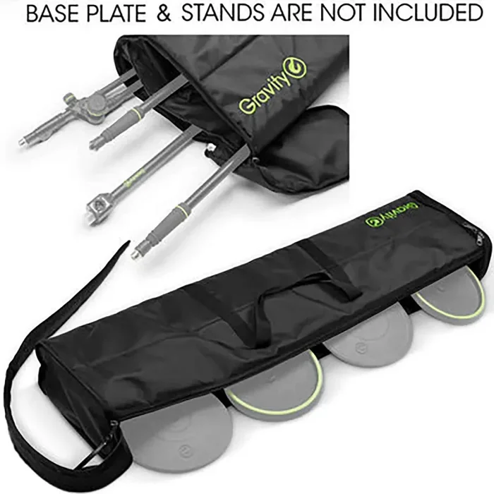 The Gravity GR-GBGMSPB4B Transport Bag for 4 Microphone Stands with Plate Base Keep your round base microphone stands safe and secure with the BGMSPB4B Gravity Transport Bag.Designed to protect your microphone stands and round bases, this bag will keep them safe during transport and storage. The balanced weight distribution lets you carry your gear comfortably without strain.