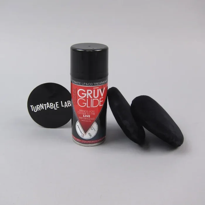 It’s back! Gruv Glide has been out of production for a couple years, but we’re glad to announce the cult favorite record cleaner has returned. Many DJ’s and vinyl collectors swear by this stuff, and for good reason, it really works! The kit comes with 2 cleaning pads and a specially formulated spray cleaner. When used properly, the process cleans your records efficiently, removes static and improves the sound quality on any record. With proper application, it will also improve tracking by providing a microscopic layer of lubrication that reduces record wear and prevents static build-up, ultimately making your records and your styli last longer. One set can treat 300 sides (150 records). You can also use this on CDs, follow the enclosed instructions. Recommended.