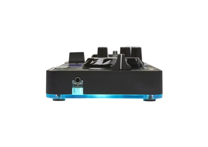 Mixer Controls: Crossfader, master volume knob, headphones volume knob, 1 bass EQ/filter knob per deck, 1 deck volume knob per deck.