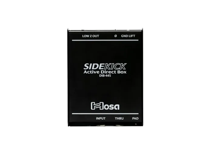 The Hosa SideKick DIB-445 is a reliable active direct box designed to convert the unbalanced high-impedance output of instruments into balanced low-impedance signals, ensuring longer cable runs without noise or interference. Powered by +48V phantom power, it features an unbalanced ¼” input, a balanced ¼” thru output, and a balanced XLR output. Ideal for guitars, basses, keyboards, and similar instruments, the SideKick DIB-445 maintains the natural sound of the input source with high headroom, low harmonic distortion, and a flat frequency response of 20Hz to 20kHz (±0.2dB). It boasts ultra-low noise (-95dBu, A-weighted) and THD+N under 0.005% at 1kHz, making it a dependable choice for professional audio setups. Its rugged all-metal housing ensures durability, even under demanding conditions.