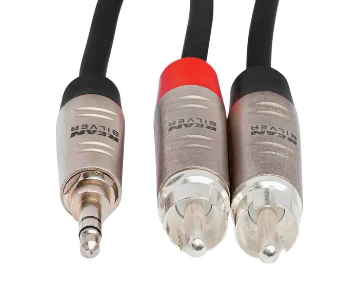 The Hosa HMR-006Y is a REAN 3.5mm TRS to Dual RCA Pro Stereo Breakout Cable 6 Feet. This cable is designed to connect a digital audio player or similar device to a stereo system. It is ideal for connecting a portable media player, laptop, or similar device to a hi-fi receiver.
