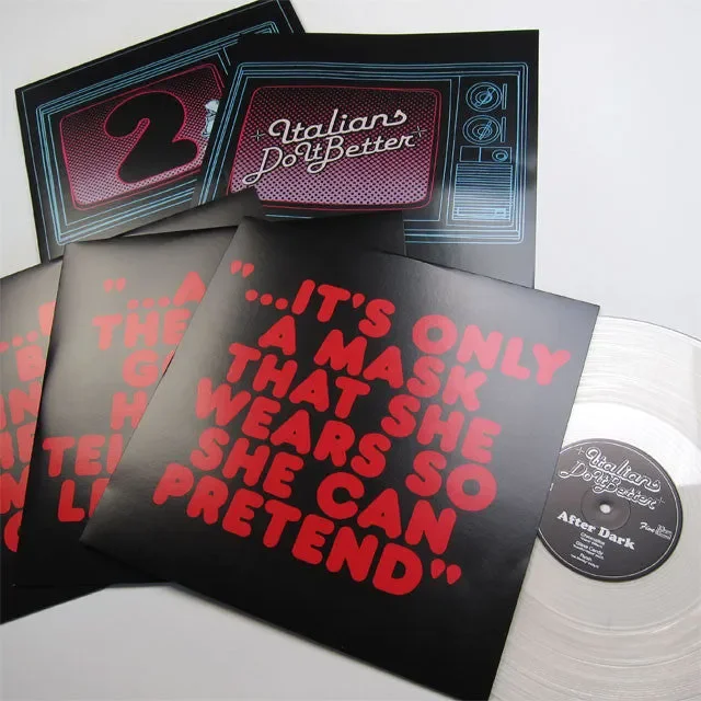The Italians Do It Better stable of artists continues to deliver the goods! The label’s second compilation, After Dark 2, shows that there is still plenty to be had. We have not heard from some of these characters since the first installment, but their resurfacing does not disappoint. After Dark 2 is one of those rare compilations that plays out like an album. Some of that feeling is due to Johnny Jewel and his ever expanding production abilities. The contributions from Chromatics and the return of Glass Candy are indicative of the producer’s strengths. He’s taken the role of the faceless electro/disco producers of the 1980s, turning out quality tracks like nobody’s business. Of course there are the touch points you’ve come to expect, Italo disco and cool female leads, but Jewel’s command of the studio has made the sound more muscular and potent. The majority of the compilation carries a sense of heroic longing; anthemic songs celebrating sadness and despair. Even the instrumental cuts carry an air of sentimental doom. The contributions from acts like Mirage and Farah provide welcome distractions from the core of the comp. After Dark 2 is a welcome return from Italians Do It Better. Triple LP pressed on clear vinyl, includes full color insert. CD comes with booklet. Recommended.